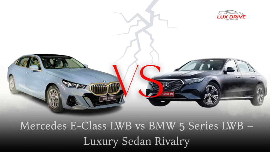 Powered by LuxDrive Mercedes vs BMW is a big car rivalry. In 2025, both brands made long-wheelbase sedans. These are Mercedes E-Class LWB and BMW 5 Series LWB. Therefore, it can be hard to choose between them. This article will show the main differences. You will learn about design, comfort, technology, engine, performance, and price.